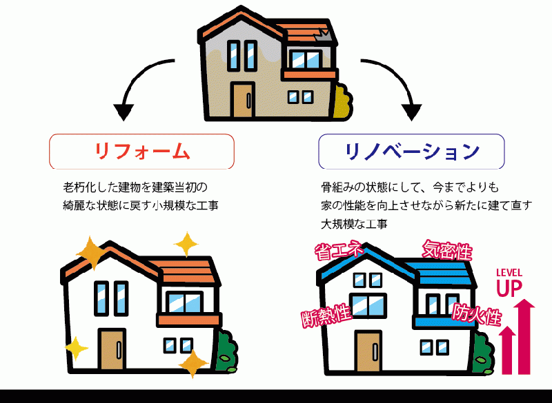 リフォームとリノベーションの違いとは? リフォームとリノベーションで異なる点を見ていきましょう。