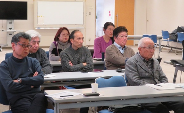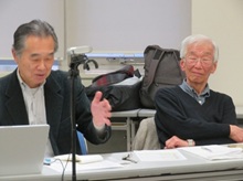 【フォーラムがスタート】 【長嶋さん(左端)、長谷川さん(中央)、位田さん(右端)】 【佐藤さん:一番前】 【いつもの町中華で懇親会】