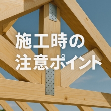③ 小屋束の接合(縦の柱と横架材の接合) 「長ほぞ(長い凸部)を差し込む方法」や「くさびを使う方法」などがあります。 これらは、実験で安全性が確認された寸法や仕様に基づいて施工することが前提です。 もし異なる寸法・方法で施工する場合は、別途で強度の確認が必要です。 それぞれの金物やビスには、打ち込む位置や深さ、部材の厚みなどに細かいルールがあります。 これらを守らないと、構造的に弱くなったり、部材が割れたりする危険があります。 正しい施工を行うことで、風や地震にも強い屋根構造になります。