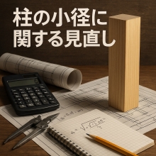 柱の太さ(小径)に関する新しいルール(建築基準法施行令第43条関連) これまで、建物の柱の太さ(小径)を決めるとき、「軽い屋根」「重い屋根」といった単純な区分が使われていました。 しかし、近年では建物にかかる重さ(荷重)が多様化しているため、その実態に応じた、より正確な計算方法へと見直されました。 ■柱の太さの計算式(基本の算定式) 新しいルールでは、次の計算式を使って柱の太さを求めます。 de / l = 0.027 + 22.5 × Wd / l² ・de:柱の必要な太さ(mm) ・l:上下の梁(横架材)間の鉛直距離(mm) ・Wd:その階にかかる1㎡あたりの固定荷重と積載荷重の合計(N/㎡) ※固定荷重:壁や床など、常にかかる重さ ※積載荷重:家具や人など、変動する重さ ※雪の重さ(積雪荷重)は含めない ※柱に壁がついている場合、その方向では柱の太さの検討は不要 ■より詳しい計算式(座屈の理論式) さらに精度の高い「座屈(ざくつ)」に基づく理論式も用意されています。 de = l / 75.05 + √{ (l / 75.05)² + 1 / 1.3 × Wd × Ae / (1.1 × Fc / 3) } ・Ae:柱が支える床面積(㎡) ・Fc:柱の木材が耐えられる圧縮強度(N/mm²) この式を使うことで、 ・柱に必要な太さ(小径) ・柱が支えられる面積 をより正確に求めることができます。 ■計算支援ツールと早見表 日本住宅・木材技術センターでは、以下のサポートが提供されています。 ・条件を入力すれば、自動で柱の太さや負担面積を計算できる表計算ツール(Excelなど) ・標準的な条件に応じた早見表(試算例) これらは壁量計算のツールと同様に、センターの公式HPで公開されています。
