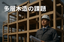 2. 防火・耐火の課題 ・長時間火に耐える技術 4階以上の建物では「2時間耐火性能」が必要です。 しかし、その多くは特許技術であり、自由に使えません。 ・接合部の耐火実験 柱や梁などの部材ごとに認定を取れていても、実際の「つなぎ目」が火に耐えられるかは実験で確認する必要があります。 3. その他の課題 ・外壁やサッシの取り付け 木造の骨組みにビル用サッシ(窓枠)をどう固定するか、その耐久性(長期間の変形など)を確認しなければなりません。 ・屋上防水や劣化対策 長期間の耐久性を確保するために、防水や外壁仕上げの工法を研究する必要があります。 ・施工方法の検討 新しい技術をどう現場で施工するかも課題です。 4. ゼネコンの役割 多層木造はまだ新しい分野なので、調べるべきことが非常に多岐にわたります。 そのため、総合的に技術や施工を管理できるゼネコン(大手建設会社)の力が重要です。 実際、現在はゼネコン主導で多層木造ビルの建設が進んでいます。 5. 今後の展望 将来的には、アトリエ系の設計事務所や中小の建設会社でも取り組めるようにするため、「標準的な納まり集」(部材の取り付け方法や詳細図のまとめ)が求められています。 <まとめ> 多層木造は「新しい挑戦」であり、構造・防火・耐久性などあらゆる課題をクリアする必要があります。 そのためにゼネコンが大きな役割を果たしており、今後は中小企業でも取り組めるように仕組みづくりが進められています。