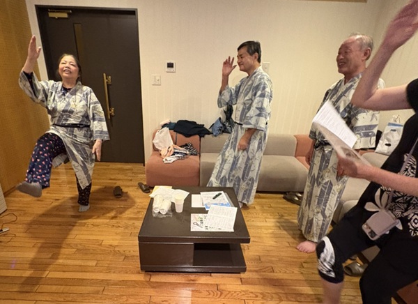 夜は、定番のカラオケに「かっぽれ」のレッスンも加わり、賑わいを添えました。