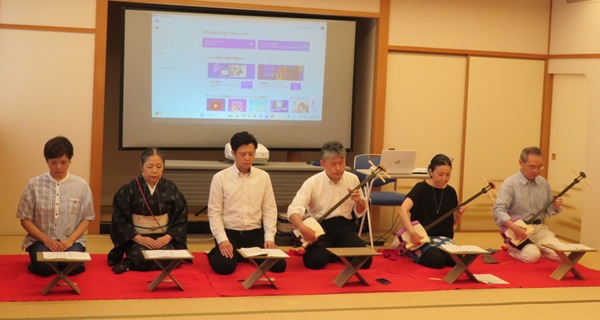 6月28日、富士通社友会と共同で、クリエイティブ倶楽部会員(社会支援グループ)の上田直子(杵屋喜之百)さんによる長唄・三味線体験セミナーがユニオンビルで開催されました。