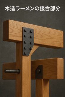 ① 合わせ梁型の接合 仕組み:梁と柱が交わる部分(パネルゾーン)に、ボルトを円形や四角形に並べて配置する。 補強方法:ボルトだけでは強度が足りない場合、ブルドックジベル・シアプレート・スプリットリングと呼ばれる金具を挟んで補強する。 特徴:設計方法が確立されているが、接合部に「ガタ」が生じやすく、モーメント抵抗(曲げに対する強さ)がスリップする挙動を示す。そのため、この特性を考慮した設計が必要。 構造形式:一方向ラーメン。 ② 鋼板挿入ドリフトピン接合 仕組み:柱や梁にチェーンソーでスリット(切り込み)を入れ、その中に厚さ9mmや12mmの鋼板を差し込み、ドリフトピン(鋼棒)で固定する。 特徴:施工が比較的簡単で、実施例も多い。ただし、こちらも先穴部分の「ガタ」によりスリップ挙動が生じる。 構造形式:一方向ラーメン。 ③ 鉄筋挿入接着工法(GIR工法) 仕組み:梁に開けた穴に異形鉄筋や全ネジ鉄筋を差し込み、エポキシ樹脂で固める。 イメージ:鉄筋コンクリート梁の主筋のように鉄筋が配置され、モーメントを負担。 ポイント: ・2方向ラーメンでは、鉄筋同士が柱の中で交差できるように段差を設ける。 ・現場での接着施工のため、温度管理や養生が重要。 特徴:剛性の高い接合部がつくれるため、非住宅の木造建築で多く採用されている。最近は、鉄筋を先に降伏させて靭性を確保するタイプも開発されている。 ④ ラグスクリューボルト工法(LSB工法) 仕組み:GIR工法の鉄筋の代わりに、ラグスクリューボルトを梁や柱にあらかじめねじ込み、現場で両者を結合する。 特徴:接着剤を使わず乾式で施工できるため、管理が容易。 用途:主に戸建住宅規模を対象に開発・実用化されている。 <まとめ> 木造ラーメンの接合部には、 ・ボルトとジベルを使う「合わせ梁型」 ・鋼板とドリフトピンを使う「鋼板挿入ドリフトピン接合」 ・鉄筋と樹脂で固める「GIR工法」 ・乾式で簡単な「LSB工法」 の4種類があります。 施工性・強度・対象建築規模によって使い分けられ、特に非住宅建築では「鉄筋挿入接着工法」が多く使われています。