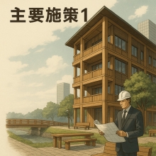 ① 建築物での木材利用を進める方針 千葉県は、公共建築(役所や学校など)を中心に、低い建物は原則「木造」で建てることを基本にしています。 木造が難しい場合でも、内装(壁・床・天井など)に木を取り入れることを推奨しています。 民間のビルや中高層の建物でも木材を使うことを明確に打ち出しています。 橋や遊歩道などの土木施設や、木質バイオマス(木を燃料にする設備)にも木材利用を広げています。 先進技術として、CLT(大きな板材を何層も貼り合わせたもの)や火に強い木材を積極的に普及させ、あわせて人材育成にも取り組んでいます。 また、毎年の実績を公開しており、例えば2023年度は977㎥の木材を利用、そのうち62%が県産材でした → これは発注者に「ちゃんと木を使っている」と説明する根拠になります