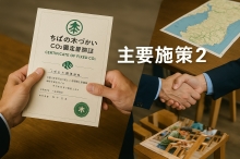 主要施策1 ①~③に引き続き④~⑦の施策についてお話します。 ④ 認証制度(見える化・PR) ・「ちばの木づかい」CO₂固定量認証 千葉県産の木材を一定割合以上使った新しい木造建物について、木材がどのくらい二酸化炭素を吸収・固定しているかを数値で計算し、認証書を発行します。 設計の段階から申請できるので、建物が完成したあとには「環境にやさしい建物です」とPRするツールとしても活用できます。 ・ちばの木認証制度 使っている木材が千葉県産で、合法的に伐採されたものであることを証明します。 特に県外のプロジェクトや大規模な案件では、「きちんとした流通経路で調達した木材です」という信頼性を示す証拠になります。 ⑤ 市町村との連携 千葉県内の51市町村が木材利用を促進する方針を策定しています。 - 新しい法律に基づく方針:25市町 - 古い法律に基づく方針:26市町村 建物を計画するエリアの市町村が木材利用の方針を持っているかを確認しておくと、補助金や協議をスムーズに進められます。 自治体によっては、県産材利用を条例で義務付けたり、強く推奨したりしている場合もあるので注意が必要です。