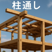 ■メリット ・部材の規格化がしやすい 通し柱で囲まれた基本の形を繰り返すと、梁の長さや高さをそろえることができ、材料を規格化しやすくなります。 ・力の流れがわかりやすい 柱が1階から2階へ連続しているので、構造的に力の伝わり方が明快になります。 ・床の水平剛性が高めやすい 梁の高さ(天端)がそろうので、床の剛性(水平に強くする性能)を確保しやすいです。 ・構造計画の合理化 耐力壁を通し柱や梁のグリッド内に配置すれば、基礎を含めた構造全体を合理的に計画できます。 ■注意点(弱点) ・接合部の欠損 通し柱に梁を差し込むため、柱の断面が欠けます。 柱は 5寸角(150mm角)以上 を確保するのが望ましいです。 梁の差し口にかかる荷重が大きい場合は、近くに「管柱」を設けて負担を分散する方法もあります。 ・水平荷重時の抜け防止 地震などで横から力がかかると、梁が柱から抜けそうになります。 そのため、ボルトでしっかり引き付けて固定しておく必要があります。 ・受け梁の欠損 梁と梁をつなぐ部分(受け梁)は断面が大きく欠けます。 そのため、梁せいや幅を大きめにして補強することが推奨されます。 ■架構計画の手順 基本グリッドをつくる(2,730〜3,640mm) →グリッド交点に通し柱を配置 →通し柱をつなぐ大梁を設置 →小梁を適宜設ける →通し柱と大梁の中に耐力壁を配置 ■接合部の工夫 ●伝統的な仕口(大入れ、雇いホゾ、車知栓など) ・断面欠損に注意 ・地震時に抜けないようボルトで引き付けることが重要 ・四方差しは特に断面欠損が大きくなるので注意 ●梁に段差を設けた仕口 ・梁の高さに段差をつけ、柱の欠損を減らす ・通し柱の近くに管柱を置けば、万が一抜けても鉛直荷重を支えられる <まとめ> 柱通し構法は「規格化」「合理化」「耐震性の高さ」といったメリットが大きい一方で、接合部の断面欠損や抜け防止が課題となります。そのため、仕口の工夫や柱断面の確保、管柱の補助が欠かせません。