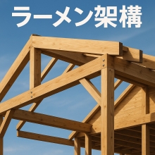 ■ラーメン架構とは? 柱と梁だけで水平力に耐えるラーメン架構の強さは、柱の太さと接合部(仕口)のつくり方でほぼ決まります。 ●木造でいう「ラーメン架構」 柱と梁のつながり方(接合部)がピン接合だと、地震や風などの水平力がかかったとき、柱と梁はクニャッと倒れてしまい、ほとんど抵抗できません。 一方、 柱と梁を剛接合(がっちり固定)にすると、同じ水平力がかかっても、接合部が直角(90°)を保とうとするので、変形が小さくなります。 このように、 柱と梁の骨組み(軸組)だけで、水平力に抵抗できる構造 をラーメン架構(ラーメンフレーム)と呼びます。