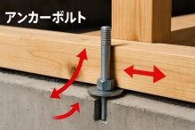 ・アンカーボルトは、土台がずれたり浮き上がったりするのを止める部材