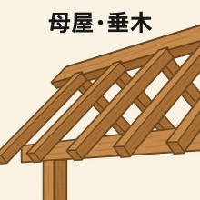 ■母屋・垂木形式 母屋・垂木形式の小屋組は、 ・下に小屋梁 ・その上に小屋束(たて材) ・さらにその上に母屋 ・母屋から垂木が掛かって屋根を支える という構成になっています。 小屋梁の断面さえ十分に確保しておけば、小屋束の位置を比較的自由に決められるので、いろいろな屋根形状に対応しやすいのが特徴です。 ただし構造的には、 ・小屋梁より下の軸組(柱・梁など) と ・小屋組(母屋・垂木など) を別々に考えるのではなく、一体の架構として考える必要があります。