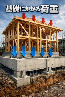 ■鉛直荷重(建物の重さ)に対して基礎がやること 基礎は、建物の重さを受け止めて、地盤にうまく分散して伝えます。 ●地盤が耐えられる力=「地耐力」 地盤が 1㎡あたりどれだけの荷重に耐えられるかを「地耐力」と呼びます。 これは地盤調査の結果から推定します。 ●建物が地面にかける圧力=「接地圧」 建物の重さを、基礎が地面に接している面積(底版面積)で割ったものを「接地圧」といいます。 ・接地圧が地耐力より小さい → 地盤が耐えられるのでOK ・接地圧が地耐力より大きい → 地盤が負けて沈みやすい(不同沈下の原因) ●軟弱地盤なら「ベタ基礎」が有利 地耐力が小さい(弱い)地盤では、底面積を広くして圧力を分散できるベタ基礎が向いています。 床下全面にコンクリートの板(スラブ)を敷くため、接地圧を小さくしやすいからです。 ●板を敷くだけだと弱い ベタ基礎は面積が大きい一方で、底版だけだとひび割れしやすく、沈みにも弱くなりがちです。 そこで、 ・立上り(外周や内部の壁状部分) ・地中梁(床下の梁) を格子状に入れて、剛性(変形しにくさ)*高めます。 つまり、基礎は「面」だけではなく「枠」や「梁」を組み合わせて強くします。 ●基礎は上部構造(柱・壁)とセットで考える 建物の荷重は、柱や耐力壁がある位置に集まります。 そのため、基礎の立上りや地中梁も、上部構造の力の流れに合わせて配置しないと、無理が出ます。 主構面(柱や壁が連続する主要な通り)が整理されている建物ほど、基礎計画も自然とスッキリします。 ■水平力(地震など)に対して基礎がやること 地震などで建物に横向きの力がかかると、その力は次のように伝わります。 ●上部構造 → 基礎へ伝わる仕組み 水平力は主に、 ・土台と基礎立上りの接触面の摩擦 ・アンカーボルト(基礎と土台を締結するボルト) によって、建物から基礎へ伝わります。 ●基礎 → 地盤へ伝える仕組み 基礎に伝わった水平力は、 ・底版と地盤の摩擦 ・基礎の根入れ部分にかかる土圧(地面が押し返す力) で地盤に受け渡されます。 そのため、少なくとも建物の外周部には根入れ(埋め込み)が必要になります。 ●細長い建物は「転倒」も要注意 高さに対して平面が小さいような細長い建物は、地震時に転倒しようとする力が強くなります。 この場合、基礎には通常の反力に加えて転倒による反力も加わるので、 短期荷重(地震時など)でも地耐力をチェックする必要が出てきます。 ■基礎の役割をまとめると、 ① 鉛直荷重への対応 ・建物の重さを地盤へ伝える ・不同沈下を防ぐ(長期的に傾きにくくする) ・「接地圧 ≤ 地耐力」が基本条件 ② 水平荷重への対応 ・アンカーボルトなどで水平力を基礎へ伝える ・摩擦・土圧・根入れで地盤へ逃がす ・外周部の根入れが重要 ■立上り・地中梁が必要な理由 底版(スラブ)だけの基礎は、たとえるなら、枠のない紙のようなものです。 硬くて平らな机の上なら安定しますが、少し条件が悪いと変形しやすいです。 一方、紙の周りを枠で囲むと、形が崩れにくくなります。 この「枠」や「桟(さん)」の役割をするのが、 ・立上り(枠) ・地中梁(桟) です。 枠で区切られる面積が小さいほど、全体としてたわみにくくなります。 ■基礎は「平面計画」と連動させるべき 基礎の形は、単に地盤だけで決めるものではなく、建物の壁・柱の配置(平面計画)と連動させる必要があります。 ・荷重が集まる位置に、立上りや地中梁を通す ・上部構造の主構面に合わせる ・その結果、力の流れが自然になり、ひび割れや不同沈下のリスクも下がる という考え方です。