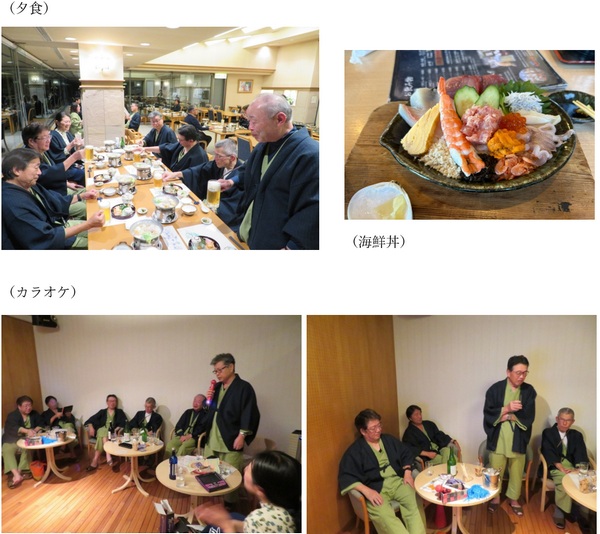 圧巻だったのは、カラオケ現役の板東さん、おなじみ「フラ」の山口さんの場慣れしたお二人に対し、ほとんど歌わないと信じられていた嶋田さんと、さすが貫禄の斜木さんが徐々に実力を見せ、おおいに盛り上がりました。翌朝は城ヶ崎灯台散策と海女小屋の海鮮丼を久しぶりに楽しみ、伊東駅で解散しましたが、次は別の地域に出かけたいねとの意見もでて、次回が楽しみになりました。