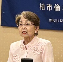 戦前戦中戦後を生きた先人たちの思いと行動を現代に継承していきたい。55歳で倫理に入会し、39歳で夫を亡くした後に企業のトップに立った自身の体験を通じて、17か条の教えが人生の支えとなった。特に第三節の「真人生の成就」が重要。すなおに「あーそうなんですね」と相手の言うことを受け入れる。